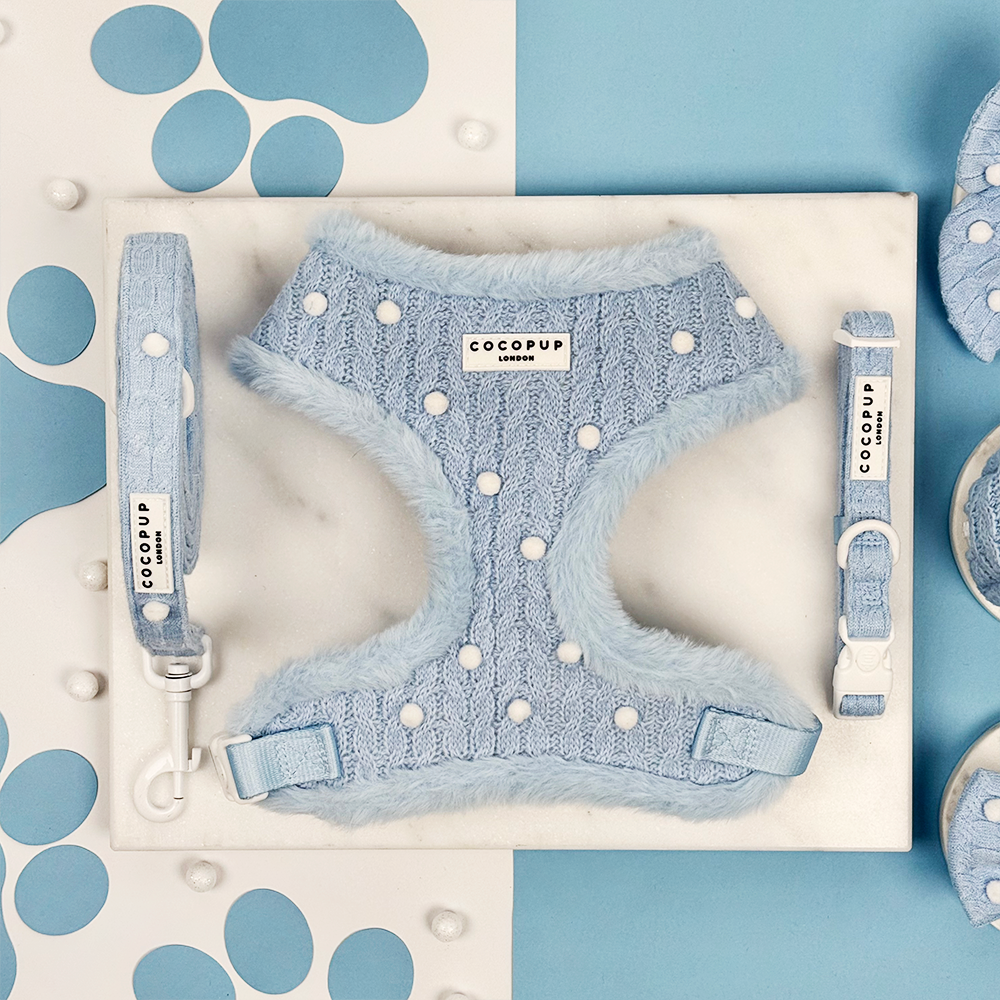 Introducing our Snowpaws Adjustable Neck Harness, Lead & Collar Bundle - the perfect set for your pup's daily walk this winter! Made from soft cable knit, this bundle includes an adjustable neck harness, lead, and collar, the harness features super cute snowball pom poms. Time for some pawsome adventures!