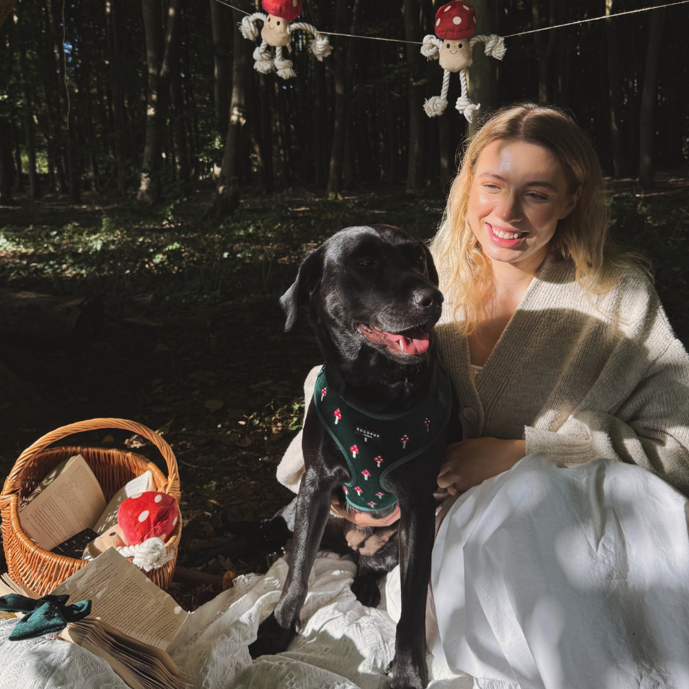 Bring a touch of woodland magic to your dog’s adventures with the Toadstool Trails Adjustable Neck Harness, Lead & Collar Bundle. Crafted from lush green velvet and adorned with charming embroidered toadstools on the harness, this set combines style with safety. Both collar and harness feature secure safety locks, ensuring your furry friend stays snug and secure on every playful walk.