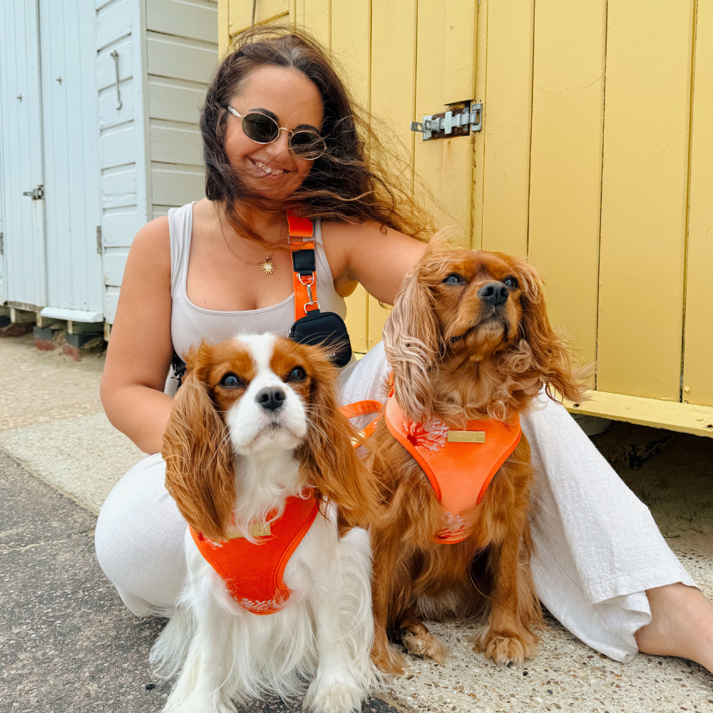 Get ready to hit the beach with your furry best friend in style with our Dog Walking Bag Bundle! This coral coloured bag strap features a playful embroidered design that will make you stand out during those summer sunset walks. So grab your pup and enjoy the orange-tinted views!