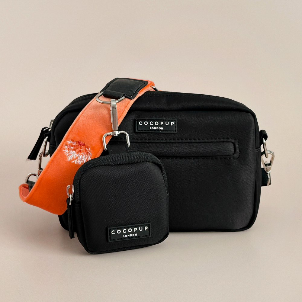 Our Bag Bundle includes: Bag, Treat Pouch & Luxe Velvet Coral Core Bag Strap