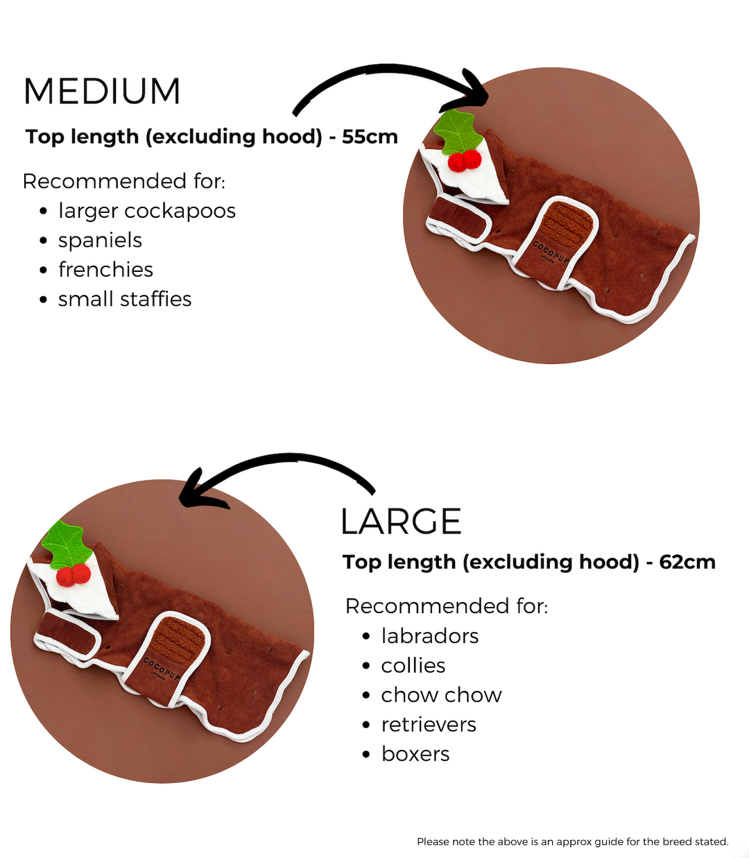 Introducing our festive Christmas Pudding Drying Robe, perfect for drying off post-bath time or soggy dog walk. Made with a soft and absorbent fabric, this cosy robe features an adorable pudding design and comes in a beautiful chocolate brown colour. Get warm and settle by the fire with a touch of Christmas spirit.