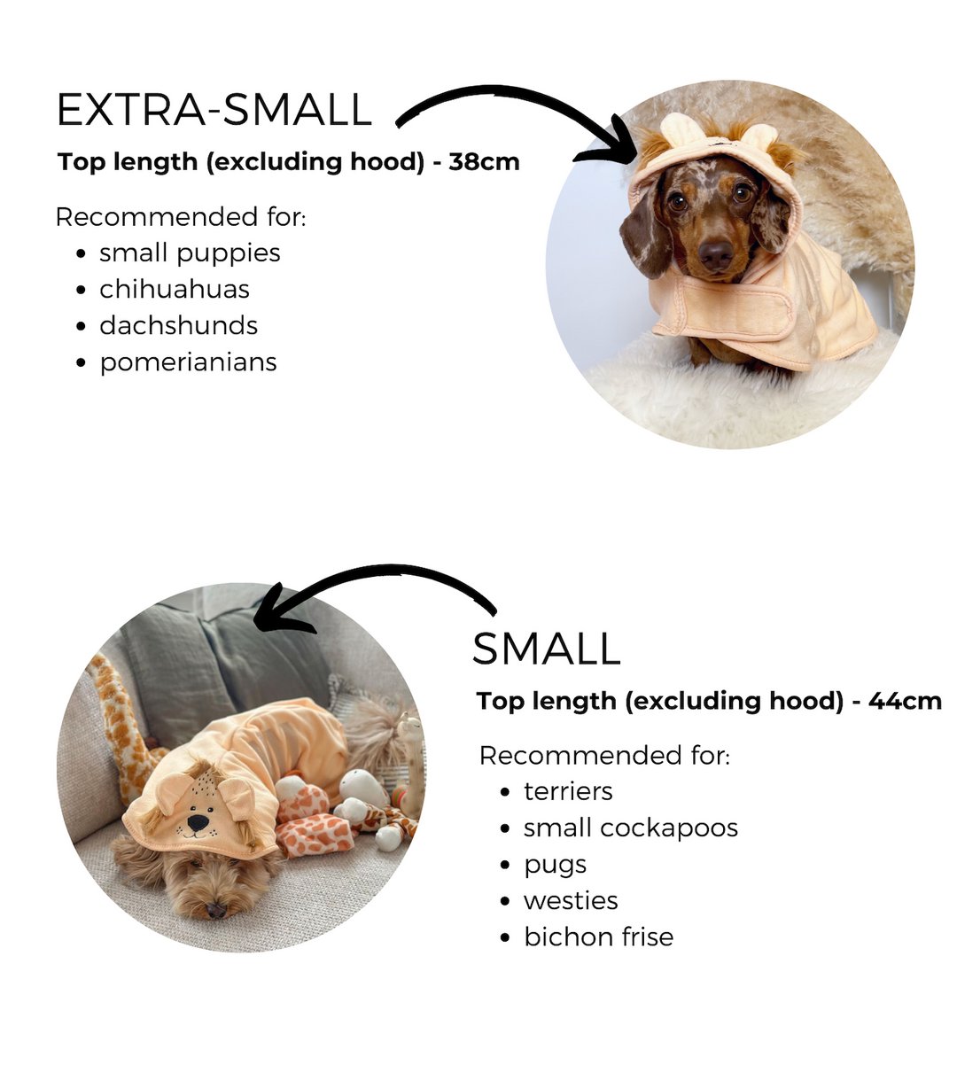Simply pop your pooch in our robe, fasten around the belly and neck with our super simple velcro patches. Pawfect for relaxing in post walkies... say goodbye to wet dog smell and endless rubbing down!