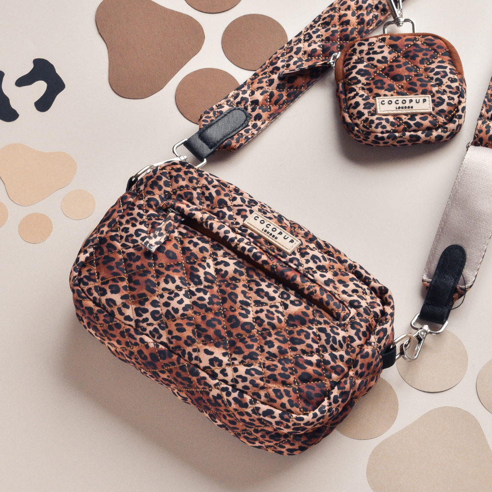 Introducing the Quilted Leopard Pup Dog Walking Bag - the perfect accessory for dog walks! With an on-trend leopard print design, celebrate our 4th birthday in style. Roar your way through your daily dog walks with this fun and functional bag!