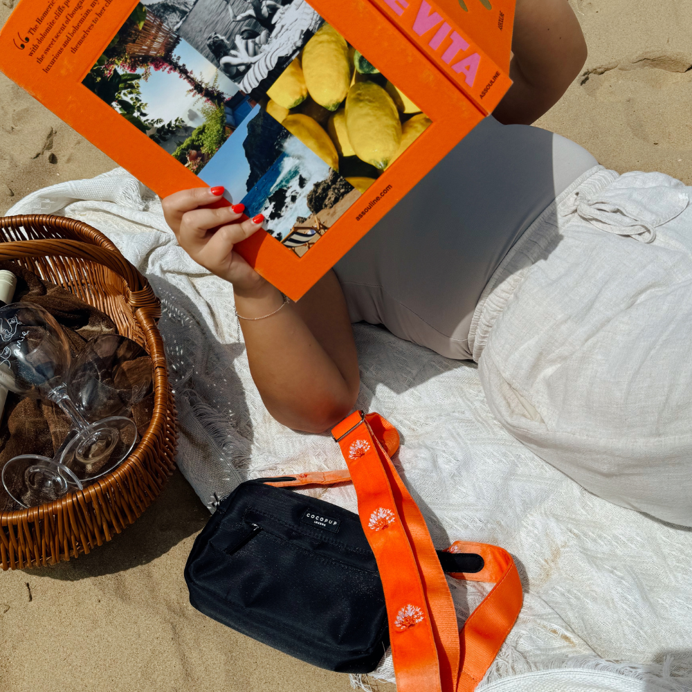 Unleash some fun with this vibrant Luxe Velvet Bag Strap - Coral Core. Perfect for beach days, summer strolls, and evening dog walks. The bright orange colour and embroidered design will add a pop of playfulness to any outfit. Get ready to turn heads and make a statement!