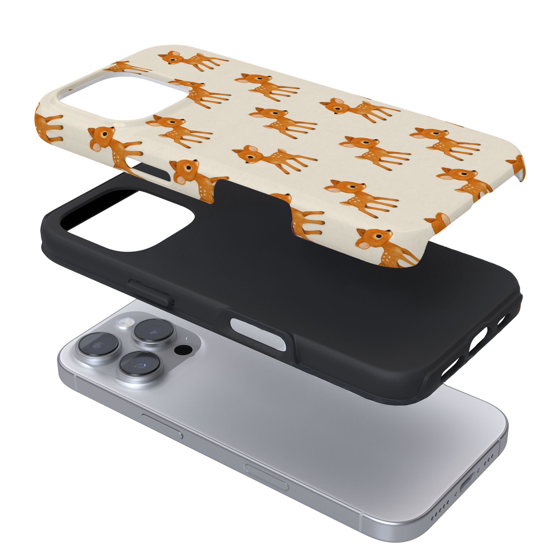 Adorable, gentle, and full of woodland charm—our Cute Fawn Phone Case is designed for those who love all things sweet and whimsical. Featuring a delightful repeat pattern of tiny fawns with soft caramel tones on a creamy backdrop, this case adds a touch of innocence and coziness to your everyday essentials.
