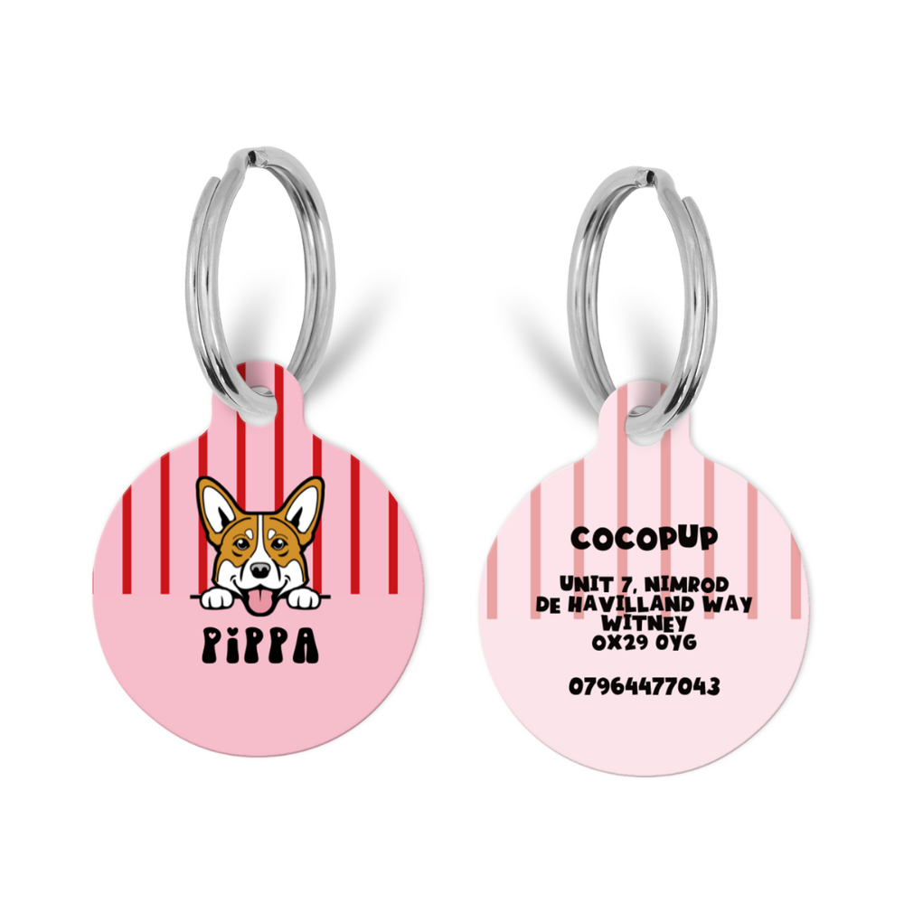 Personalised Dog Cartoon ID Tag - Candy Stripes