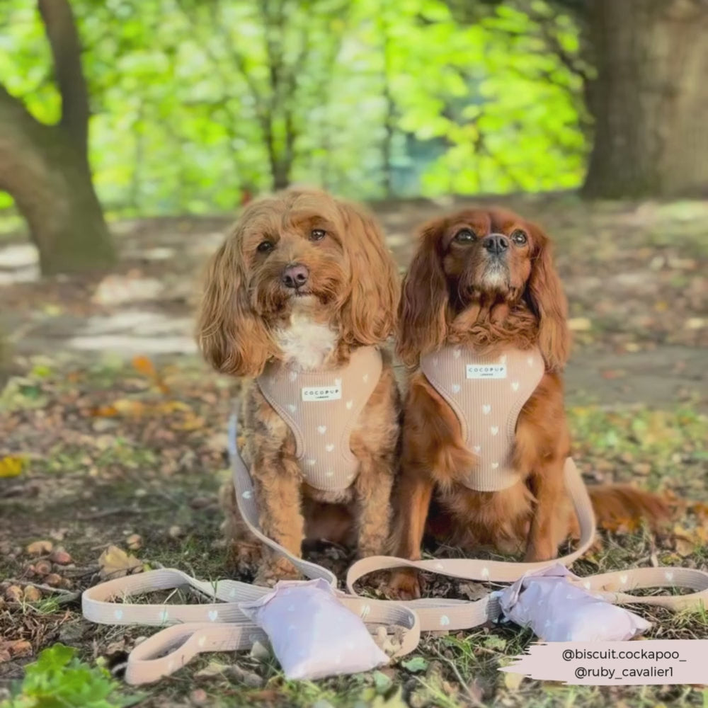 Introducing our Chai Hearts Adjustable Neck Harness, Lead & Collar Bundle - the perfect set for your pup's daily walk! Made from soft, durable materials, this bundle includes an adjustable neck harness, lead, and collar, the harness features a cute and adorable embroidered white hearts. Time for some pawsome adventures!
