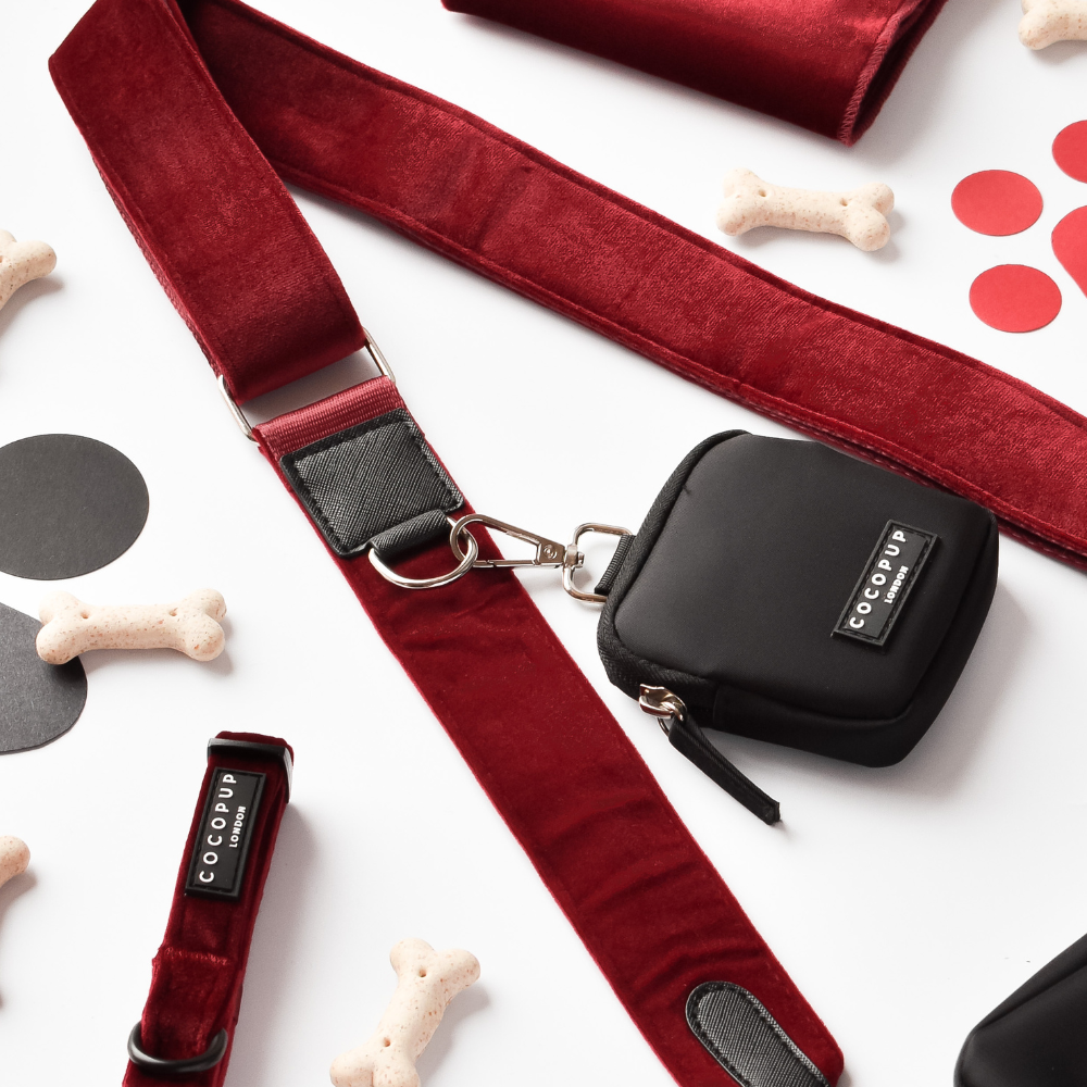 Elevate your pup's walks with our stunning Dog Walking Black Bag Bundle featuring a luxurious deep red velvet strap. Perfect for Christmas, Valentine's Day, or treating yourself any day of the year, this chic combination pairs practicality with style. The rich berry red velvet adds a touch of elegance to your daily dog-walking routine, making every outing feel special. Whether you're popping to the park or heading out for an adventure, this bundle has everything you need to keep treats, toys, and essentials close at hand. A gift that'll have both you and your furry friend wagging with joy!