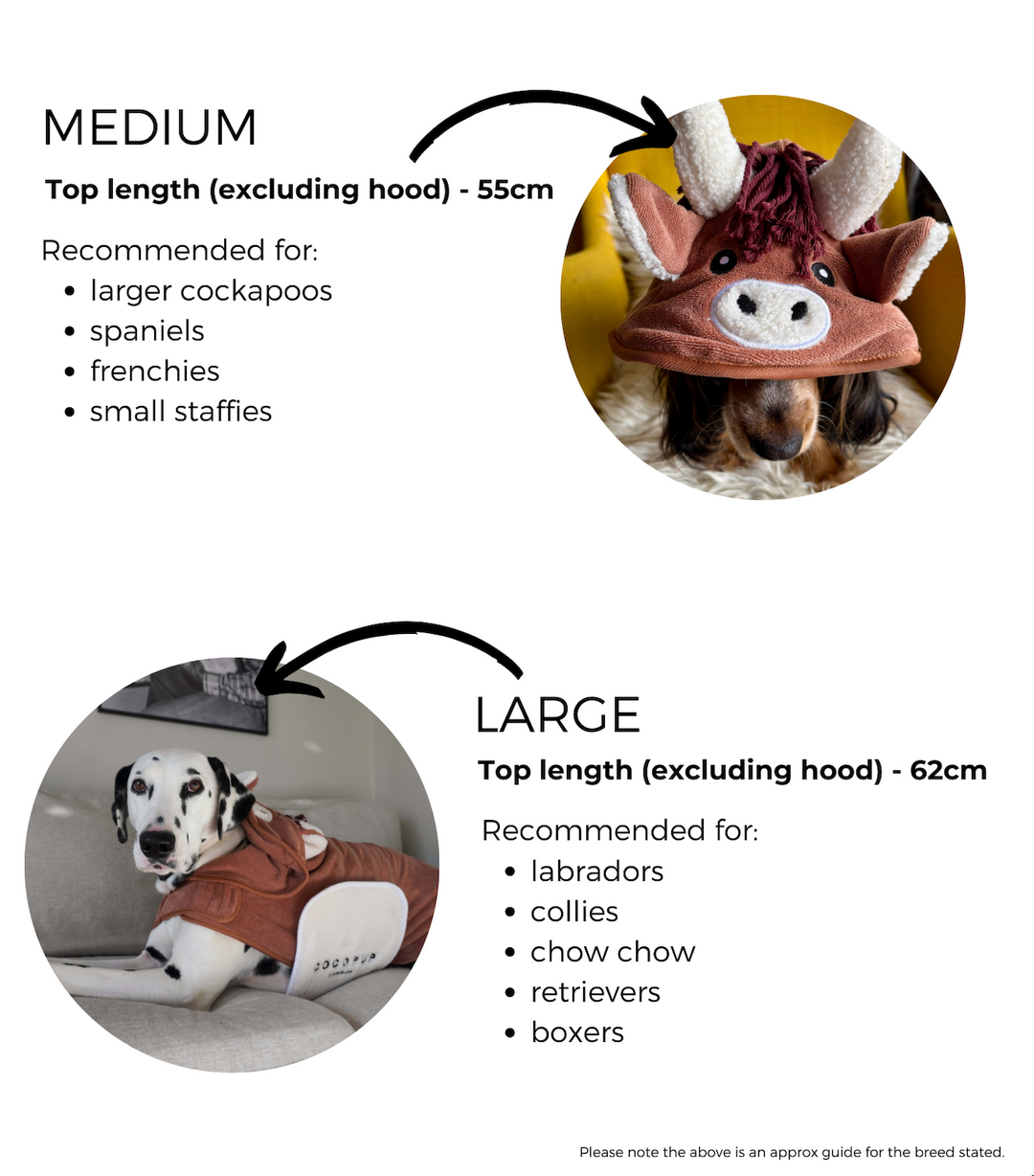 Meet Harold, the Highland Cow Drying Robe.The the paw-fect way to keep your pup cosy and dry after bath time or outdoor adventures.