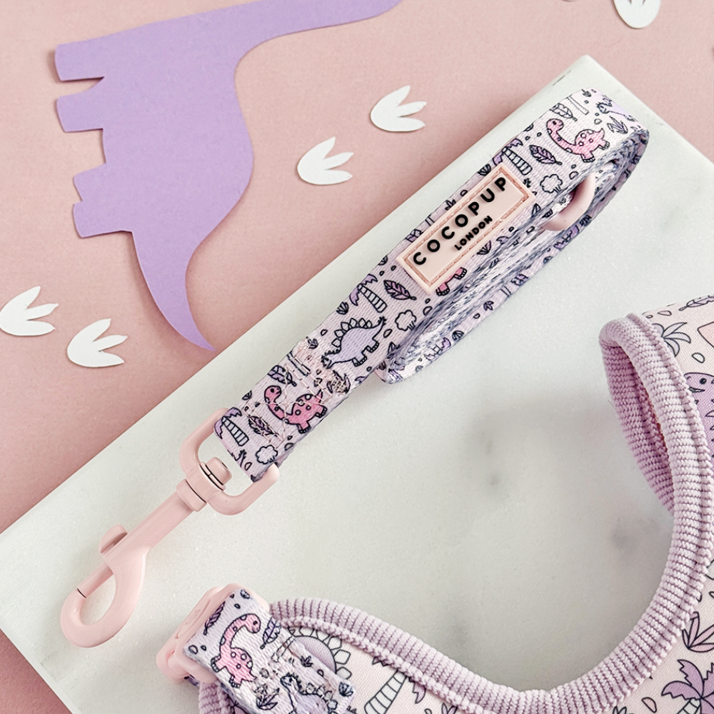 Take your furry friend for a walk in prehistoric style with our lilac Princess Dino Lead! This quirky lead features a cute dinosaur design and is perfect for doggos who love to stand out.